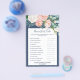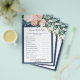 This romantic peony flowers blue "name that cake" game is perfect for an elegant bridal shower. The floral design features blush pink, peach and white cascading watercolor flowers on a navy blue background. Personalize the game with your own questions, the name of the bride and the shower date.