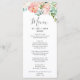 This romantic peony flowers dinner menu card is perfect for an elegant wedding. The floral design features blush pink, peach and white cascading watercolor flowers. This menu can be used for a wedding reception, rehearsal dinner, or any event.