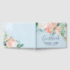 This romantic peony flowers light blue wedding guest book is perfect for an elegant wedding. The floral design features blush pink, peach and white cascading watercolor flowers on a light blue background. Personalize the front cover with the names of the bride and groom and the wedding date.