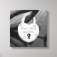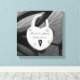 Romantic personalized love lock photo canvas print. Heart shape lock with keyhole. Black and white / sephia photograph with custom 'engraved' date and names of newly weds couple. Beautiful wedding or anniversary gift idea for newlyweds bride and groom / husband and wife. Classy photograph image with elegant script typography. Romance theme home decor. Love symbol lock on river bridge.
