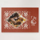 The charming puzzle design showcases a beautiful watercolor illustration of a white floral frame on a warm, earthy red background. Personalize it to your liking by tweaking the text, uploading a photo, and choosing from anniversary numbers like 10, 20, 30, 40, 50, 60, 70, 80, or 90. It's a special gift to mark a couple's milestone and provides a fun and interactive activity that can be enjoyed over and over again!