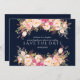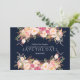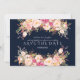 Unique and elegant card design featuring painted pink, blush roses and peonies on a rich navy blue background (you can change it, but you have to change text colour to fit your chosen background colour). On the back the same floral design with the bride and groom name. Use Customize tool to add your info, change fonts, colours. Visit, please, my Modern Blush Floral Collection, for matching items.
