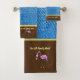 Romantic Pink Flamingos with denim texture .brown Bath Towel Set