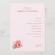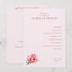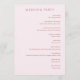 This wedding program features a minimalist and elegant design with a soft pink background, creating a romantic and serene atmosphere. The layout includes a centered heading "CEREMONY" followed by a list of event details in a clean, organized manner using a classic serif font. A single large pink peony flower illustration adds natural beauty to the composition, enhancing the overall theme of sophistication and warmth. Perfect for couples seeking an understated yet graceful aesthetic, this design is ideal for capturing the essence of their special day.