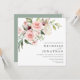 An elegant square wedding invitation set featuring watercolor blush pink roses with greenery.