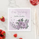 Unique wedding paper napkin featuring romantic dusty purple flowers and green leaves.