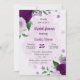 Beautiful romantic bridal shower invitations featuring purple flowers and some green leaves .
