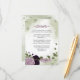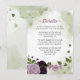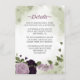 beautiful dark eggplant purple and light soft purple flowers with green leaves botanical details enclosure card.