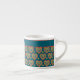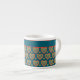 A stylish Espresso coffee mug, with a pattern of little green and red hearts on a dark teal background. You can add a name or text to the top blue band if you wish. Alternatively, leave it plain.