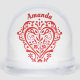 Personalize this snow globe with a name or text on this original fancy red graphic heart design. Show your love any time with this romantic design