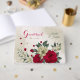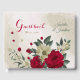 Unique wedding guest book featuring romantic red and pale yellow flowers and green leaves.