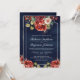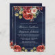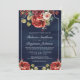 Romantic Red Roses Floral Navy QR Code Wedding Invitation