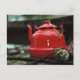Romantic Red Tea Kettle Postcard