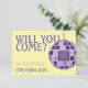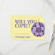 This modern “Will You Come?” wedding RSVP card blends soft mauve and pastel purple tones with a playful purple disco ball motif, creating a chic spring-ready design with a contemporary edge. Featuring a built-in QR code area for easy digital responses, this card is perfect for couples hosting a modern, retro, stylish, or fashion-forward and futuristic celebration.
