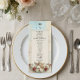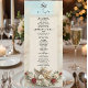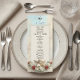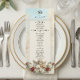 Transport your guests to an era of timeless romance with this classically inspired design, perfect for setting a sophisticated tone at your formal reception.This design features a highly detailed, classical composition centred around a vintage cherub playing the violin, rendered in a faux 3D relief style to simulate the look of carved sculpture. The artwork is set against a printed faux marble background in soft ivory and beige tones, framed by delicate lace filigree. Deep crimson red roses and sage green leaves add a rich contrast to the antique gold colour palette. The header displays "Bon Appetit" in an elegant calligraphy script above a traditional serving cloche icon.