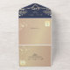 A stunning all-in-one invitation blending deep navy blue and soft rose gold floral accents. Featuring a heart motif and elegant script, this foldable seal and send invite is ideal for romantic fall weddings, modern formal events, or chic evening celebrations. No envelope required—easy to personalize and mail.