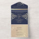 Romantic Rose Gold and Navy Wedding All In One Invitation