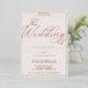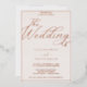 This elegant wedding invitation features a soft blush frame adorned with luxurious rose gold foil. The modern classic design includes whimsical swirls, flourishes, and hand-lettered rose gold foil typography, all framed in a formal foil border—perfect for a simple yet sophisticated celebration.