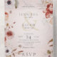 AVAILABLE WITH OR WITHOUT A QR CODE OR DINNER SELECTION OPTIONS. This design features a beautiful soft blush pink distressed background with a delicate pink, maroon, white, purple, and green floral sprays. It's romantic with a touch of vintage.