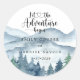 Lush watercolor in blues and greens mountain forest themed wedding stickers, with the ever popular expression: let the adventure begin. For those who love a romantic forest style woodlands wedding. To see the full collection of matching materials for this design please visit: https://www.zazzle.com/collections/rustic_forest_mountain_wedding-119965625201006103