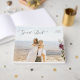 Romantic Script Photo & Wildflowers Ivory Wedding Guest Book