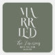 Romantic Script Sage GREEN Married Wedding Square Sticker