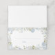 The place cards feature an intricate soft blue, white and green botanical frame design with white roses, blue hydrangea and delicate blue delphinium and greenery that is both timeless and unique, making your place cards stand out from the rest. The elegant calligraphy adds a personal touch that is both romantic and enchanting.