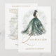 Celebrate the sweetness and elegance of fifteen with our Green Sage and Faux Golden Toned Quinceañera Invitation! This captivating invitation features a unique illustration of a radiant quinceañera, adorned in a dreamy dress decorated with romantic green sage roses. The image conveys a sense of grace and elegance, emphasizing the significance of this special event.