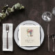 A beautiful floral arrangement graces each napkin, adding a touch of springtime elegance.