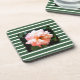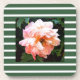 Romantic Spring Peony on Summery Green Stripes Coaster
