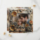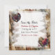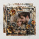 Cool and unique wedding wedding Save the Date cards. Steampunk themed with gold and silver metal gears, flowers and a weathered wood background. Upload your favourite picture in the personalize area and edit the text on the back to add your own wedding info.
