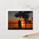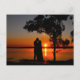Romantic sunset, or sunrise, silhouette of a couple sharing a kiss by the waters edge post card for any loving occasion