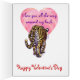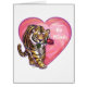 Animal Parade Cute Tiger Be Mine Valentine's Day Card features our fun artwork of a cute tiger holding a pretty rose in its mouth with layered purple, red, and pink hearts behind her and the words Be mine. The inside message reads I love you all the way around my back with the tiger from behind against a pretty pink textured heart and a Happy Valentine's Day greeting. Our fun tiger in love character is sure to bring a smile to the face of all animal lovers, tiger lovers, romance lovers, heart lovers, and red rose lovers of all ages. Say I love you with our cute tiger carrying a pretty red rose today. Be mine! Roar!