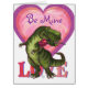 Animal Parade Tyrannosaurus Rex Dino in Love Be Mine Big Card features our heads and tails T-Rex dino carrying a rose in his mouth. On the front is the cute green dinosaur with a rose bud in his mouth standing in front of pink and purple hearts and the word, Love, with the customizable words, Be Mine, in purple above. Inside is the cute dinosaur from the back standing in front of a pink heart with the customizable words in purple, I love you all the way around my back, and Happy Valentine's Day, with enough room for you to add your own heartfelt message. Let that special someone know how much you love them this Valentine's Day.