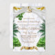 Vibrant, romantic, whimsical chic fiesta of shiny green foliage with a palm springs vibe and playful white silk and two wedding rings