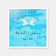 Romantic theme for paper napkins. Two doves with pink heart on lovely blue background. Editable text and image.