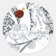 Elegant ,classy black and white design with a beautiful young woman in a flower garden,stylized roses,trees, flowers,a lute player in elegant feathered costume .Digital graphic elaboration  by Bulgan Lumini . Cool sticker for nature lovers ,easy to customize with your own text and initials as a wedding favour, save-the-date , thank you  , bridal showers, holiday parties,family reunions,Sweet 16 birthday parties,anniversary,cocktail, engagement showers, or just about any event you wish!