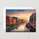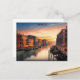 This is a romantic Venice Italy sunset design on a postcard that features a stunning view from a gondola over the italian city with its canal and european travel destination. Great product for every tourist and fan of the famous european city.