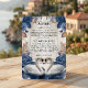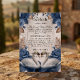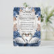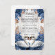 Enhance your formal invitation suite with this "Something Blue" insert, featuring romantic swans and vintage florals for a timeless, elegant aesthetic.This design features a pair of illustrated swans facing inward, symbolizing devotion, framed by a lush arrangement of watercolor florals. The color palette utilizes deep navy and dusty blue roses contrasted against warm taupe and earthy brown foliage. These elements are set against a soft cream background that visually simulates the look of aged parchment or vellum. The typography combines a sweeping, formal calligraphy script for the header with a traditional serif font for the body text, ensuring high legibility.Please note that this is a flat printed image with a printed parchment texture effect; it does not contain actual vellum, raised embossing, or physical paper texture.