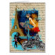 Pretty feminine romantic contemporary collage of dancers and girl in with the Eiffel tower Paris France, butterflies and a funny steampunk car old book vintage illustration with an indian chief holding romantic red love heart balloons on a blue distressed background with an old handwritten letter text. Customize this design by adding your own text.