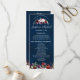 Elegant and modern romantic watercolor floral wedding program card features a bouquet of burgundy / marsala , blush pink, Purple, peach watercolor roses with matching foliage on navy blue background. Perfect for a fall / midsummer wedding. Please find more matching designs and variations from my "blissweddingpaperie" store. And feel free to contact me for further customization or matching items