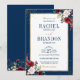 Elegant and modern romantic watercolor floral wedding invitation features a bouquet of burgundy / marsala , blush pink, peach watercolor roses with matching foliage on navy blue background. Perfect for a fall / midsummer wedding. Please find more matching designs and variations from my "blissweddingpaperie" store. And feel free to contact me for further customization or matching items.