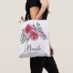 Elegant tote bag for a Bride, featuring two watercolor peony roses surrounded by smaller flowers and foliage on a white background.