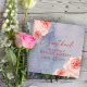 Classy and elegant personalized wedding guest book featuring vintage pink roses on a pale lavender watercolor background. The text is completely editable. Use the Personalize option to make changes. To make more changes, such as font, font colour, or text layout, use the Edit design tool.