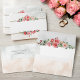Lovely clusters of elegant watercolor blush pink roses and foliage on a subtle pastel watercolor background, gold-bordered label and editable text fields.