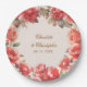 Romantic Watercolor Red Roses Floral Wedding Paper Plate