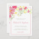 This wedding invitation features watercolor wildflowers in shades of pink, red and white with sage green greenery. Perfect for spring or summer weddings.