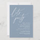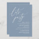 Mark the beginning of your forever with elegance using our romantic contemporary dusty blue theme wedding elopement happily ever after brunch lunch dinner party celebration invitation card, "Let's Party". Perfect for couples extending their joyous occasion, this invitation exudes sophistication with a hint of playfulness, setting the stage for a memorable event. Adorned with a timeless modern script design theme, it adds a touch of refined charm to your festivities, this invitation promises to beautifully capture your love story.
