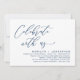Mark the beginning of your forever with elegance using our romantic contemporary navy blue theme wedding elopement happily ever after lunch, brunch, reception dinner party celebration invitation card, "Celebrate with us". Perfect for couples extending their joyous occasion, this invitation exudes sophistication with a hint of playfulness, setting the stage for a memorable event. Adorned with a timeless modern script design theme, it adds a touch of refined charm to your festivities. Crafted by TeeshaDerrick, this invitation promises to beautifully capture your love story.