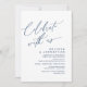 Mark the beginning of your forever with elegance using our romantic contemporary classy navy blue theme wedding elopement happily ever after brunch lunch dinner party celebration invitation card, "Celebrate with us". Perfect for couples extending their joyous occasion, this invitation exudes sophistication with a hint of playfulness, setting the stage for a memorable event. Adorned with a timeless modern script design theme, it adds a touch of refined charm to your festivities. Crafted by TeeshaDerrick, this invitation promises to beautifully capture your love story.